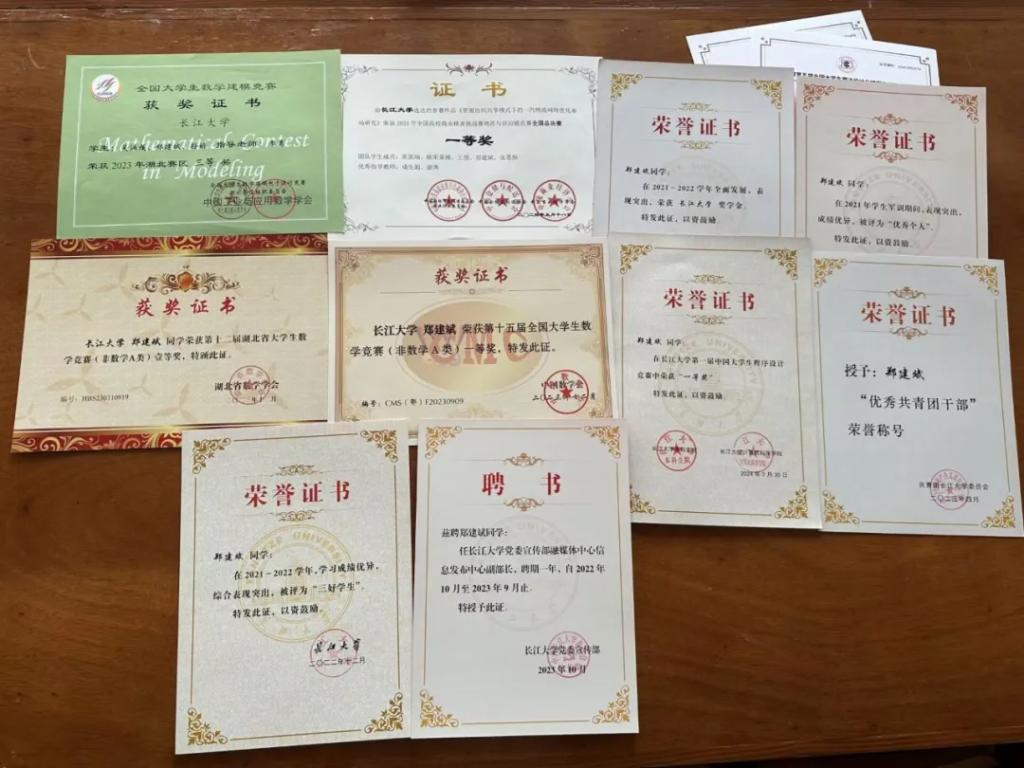 在学科竞赛上,自大二上学期接触Python程序设计课程以来,他对编程的浓厚兴趣逐渐滋生,意识到编程不仅仅是一项技能,更是理解和解决复杂问题的强大工具。为了深化这一兴趣,他在大二下学期及暑假期间参加了威廉中国官方数学建模培训,学习了Matlab等编程语言。在数学建模竞赛中,郑建斌担任团队的主要角色,负责编程和模型搭建。他凭借扎实的基础知识和创新的思维,带领团队在比赛中取得了优异成绩。这段经历不仅增强了他的自信心,也让他深刻认识到“实践是检验真理的唯一标准”的重要性。