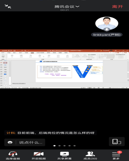 线上宣讲会邀请校企合作企业在进行企业推介的同时,向23届毕业生提供前、后端开发、软件测试、软件实施、技术支持、硬件工程师等岗位的就业机会。宣讲会现场氛围热烈,每场参与人数达到70余人,学生积极与企业互动提出应届毕业生初次就业关心的问题,并得到企业详尽的回复。WilliamHill威廉希尔就业辅导员余珺瑞参加“线上宣讲会”活动,余珺瑞老师对到场的企业表示欢迎,期待企业能收获满满,并对23届毕业生提出“先就业,再择业”的就业理念,希望同学们都能用好应届生身份,在毕业前找到一份较为满意的工作。