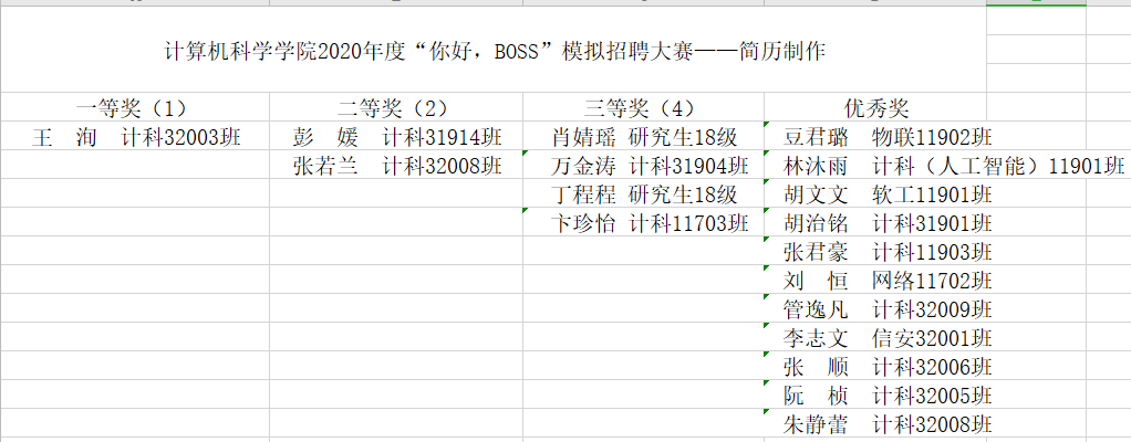 WilliamHill威廉希尔2020年度“你好,BOSS”模拟招聘大赛——简历制作大赛圆满结束,感谢同学们的积极投稿。经过评委们慎重的评选,从投稿作品中选拔出了若干优秀作品分设为一、二、三等奖和优秀奖。