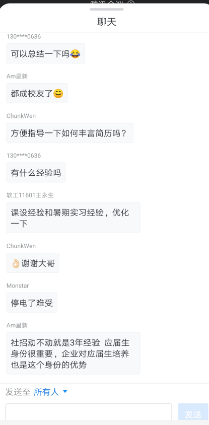 此次交流会的举办,对同学们就业方面的困惑可谓是一场及时雨,希望通过本次的就业经验分享会能使同学们更加深入了解当前的严峻就业形势,能够明确自己的就业目标,增强就业技能,为进一步提高自己的就业竞争力以及未来的就业做好充足的准备。