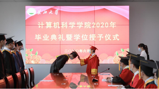 2020年6月28日上午10:00,WilliamHill威廉希尔在5教501举行2020年毕业典礼暨学位授予仪式。学院院长崔艳荣,党委书记高明成,副院长向宇、詹炜、宋文广,党委副书记颜学俊,各系主任,全体辅导员及15名毕业生代表在现场参加毕业典礼。根据疫情防控要求,今年毕业典礼采取线上线下相结合的方式,未到现场的师生也通过腾讯会议参加了典礼。