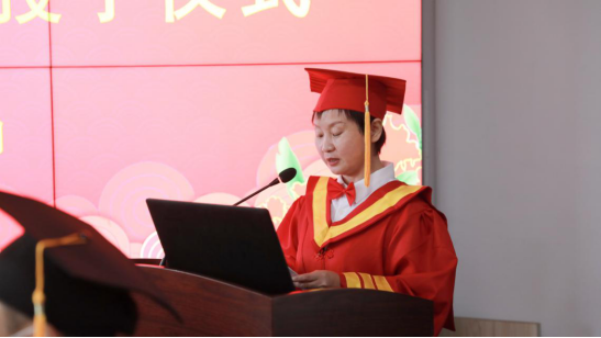 典礼最后,院长崔艳荣致辞,她希望同学们在新的征程中,记得初心,记得善良,记得心中的梦、眼中的光,记得家国情怀与责任担当,并寄语毕业生:“天戴其苍,地履其黄;纵有千古,横有八荒;前途似海,来日方长”,“大鹏一日同风起,扶摇直上九万里”!