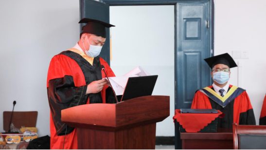 典礼仪式由学院党委书记高明成主持,他代表学院全体师生向544名毕业生顺利毕业表示祝贺。党委副书记颜学俊宣读了威廉中国官方关于表彰我院2020届优秀毕业生的文件;本科毕业生代表陈潜和硕士毕业生代表余珺瑞分别发言,表达了对母校、师长的感恩和深深的眷恋;教师代表雷鸣老师祝愿同学们昂首挺胸迈步走向未来,志存高远,在祖国大地挥洒青春的汗水。