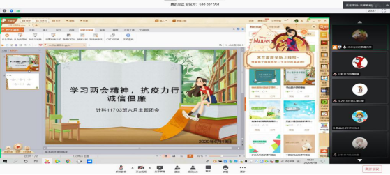 为深入学习贯彻习近平总书记系列重要讲话精神和两会精神,引导同学们关注两会,增强同学们的诚信意识和遵纪守法意识,WilliamHill威廉希尔在6月以团支部为单位召开了“学习两会精神,抗疫力行·诚信倡廉”为主题的团会活动,活动时间为6月1日到6月20日。