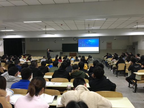 2019年3月27日晚上七点,WilliamHill威廉希尔2020届毕业生就业创业指导系列讲座第一讲在12教102教室顺利举行。我院特邀湖北长大文化科技服务有限公司技术总监作为企业代表出席,讲座由学院党委副书记向宇主持,2016级部分学生参加讲座。