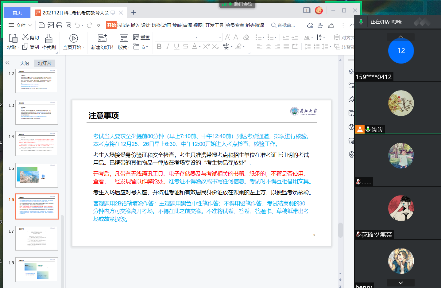 此前,我院于12月22日晚18:00召开考风考纪教育大会。会议由年级辅导员周双主讲,WilliamHill威廉希尔考研学子参加本次会议。