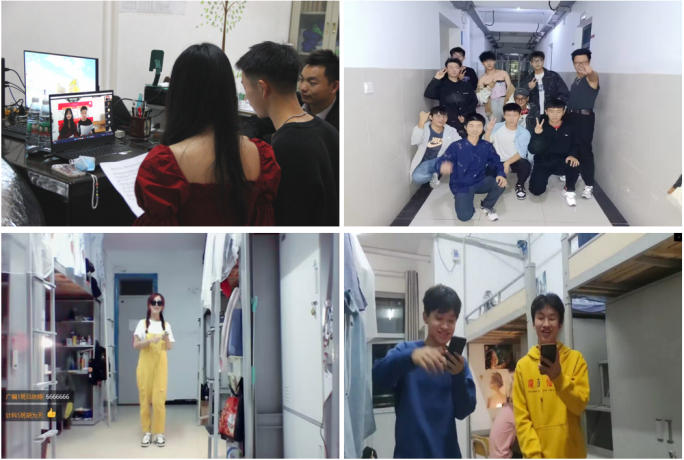 第二个环节分别由两个学院的同学,以班级、个人或宿舍为单位进行了唱歌舞蹈、乐器演奏、小品等节目表演,同学们积极参与,施展才艺。每个学院表演完毕后,由所在学院辅导员老师,随机抽选五个幸运宿舍,幸运宿舍全体成员将会获得学院准备的精美礼物。同学们更是弹幕不断,回响热烈,情绪高涨。