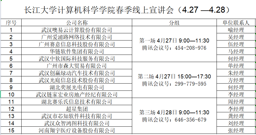 (通讯员 余珺瑞)为贯彻落实党中央、国务院“稳就业”、“保就业”决策部署,统筹做好高校毕业生就业工作,千方百计促进毕业生更加充分更高质量就业,解决困扰学生的就业难题,实现高校与企业的良性互动,WilliamHill威廉希尔于2022年4月27日—4月28日举办了2022届毕业生春季校园招聘会(计科类专场)活动,本次活动采用“线上双选会”和“线上宣讲会”同时进行的方式开展。
