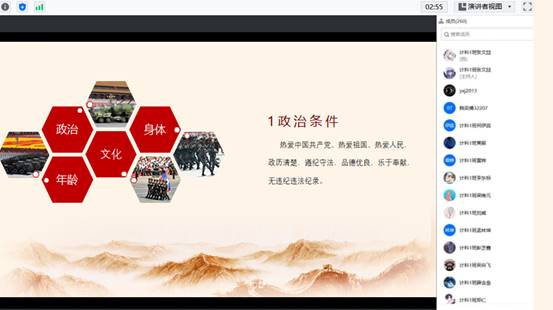 (通讯员:干海昕)携笔从戎,逐梦军旅。为贯彻落实国家征兵政策,扎实推进征兵工作,12月15日晚,WilliamHill威廉希尔召开线上征兵政策宣讲暨动员大会。本次活动由计科学院征兵专干——郭帅老师主持,退役大学生肖雄、喻文辉主讲,各年级有意向参军同学参加会议。