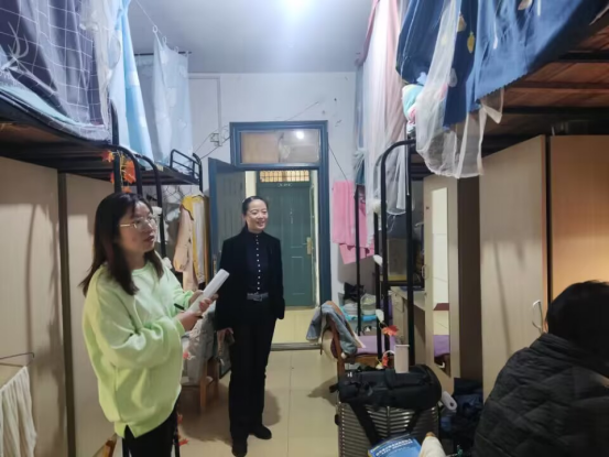 在查寝过程中,老师们与同学们亲切交流,了解同学们的假期安排以及学业规划,特别强调了宿舍的安全用电和卫生清洁,并鼓励同学们营造良好寝室氛围,健康生活成长。