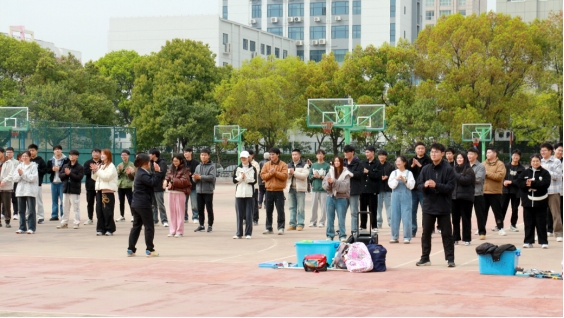 下午2时30分,伴随着动感音乐,全体学生在教练带领下跳起"热身拍拍操"。整齐地击掌与跃动身影迅速打破陌生感,为后续环节注入活力。