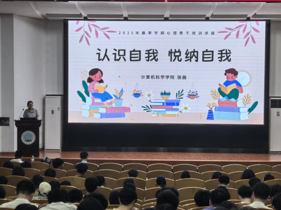 培训会上,培训老师首先通过两个小游戏“我是谁”和“他是谁”带领同学们全面认识自我。然后,培训老师阐明了积极心理学和认识自我理论,紧接着介绍了自我认识偏差及调适,鼓励同学们悦纳自我 。