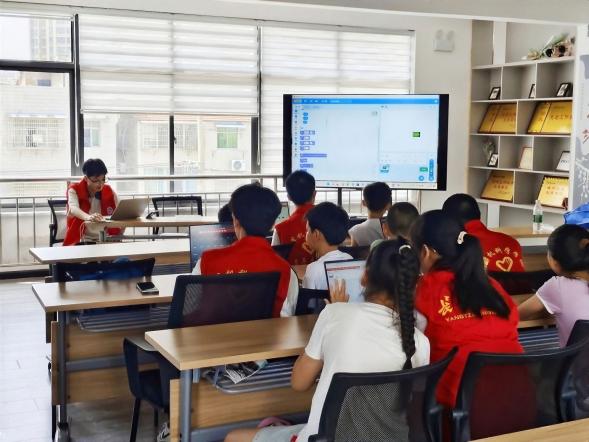 为了丰富孩子们的视野,激发科技兴趣,志愿服务队结合自身专业优势,特设“趣味编程”小课堂,通过图形化编程、小游戏设计等形式,向孩子们介绍计算思维与简单的编程逻辑,帮助他们走近科技,激发探索的好奇心。“原来电脑里的动画片是这样做出来的!”三年级学生小林惊叹道,一颗科技启蒙的种子正在悄然萌芽。