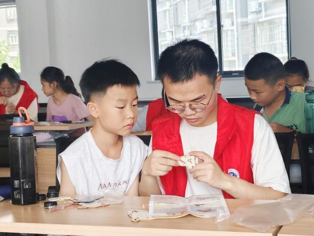 此次托管班聚焦社区小学生成长需求,主要内容包括作业辅导、学习监督、兴趣拓展和公益宣传等多个方面。每日清晨,志愿者们提前抵达活动场地调试设备、备好教具,从数学题讲解到作文思路梳理,细致开展作业辅导;通过制定“每日学习清单”,引导孩子们自主规划时间,让暑期托管既解“看护难”,更筑“成长梯”。