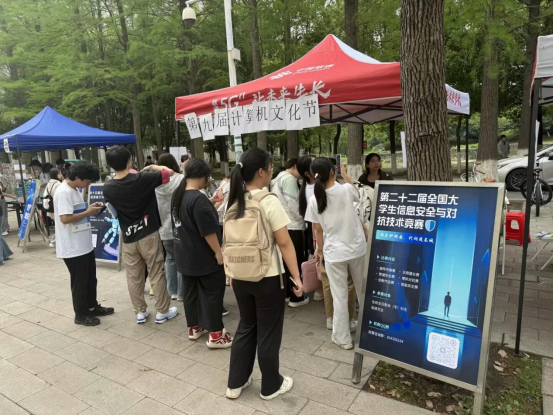 开幕式现场精心设置三大功能区域,各有侧重又相互联动,为学生带来沉浸式体验:学科竞赛宣传区是本次开幕式的核心板块。学院围绕“以赛促学、以赛育人”目标,集中展示“中国大学生计算机设计大赛”“蓝桥杯全国软件和信息技术专业人才大赛”等6项计算机领域重点赛事,通过图文展板、宣传手册及志愿者现场讲解,详细介绍各赛事的参赛要求、赛程安排、奖项设置与备赛技巧。针对非计算机专业学生关心的“零基础能否参赛”“跨专业组队规则”等问题,激发学生参与科研竞赛的热情。
