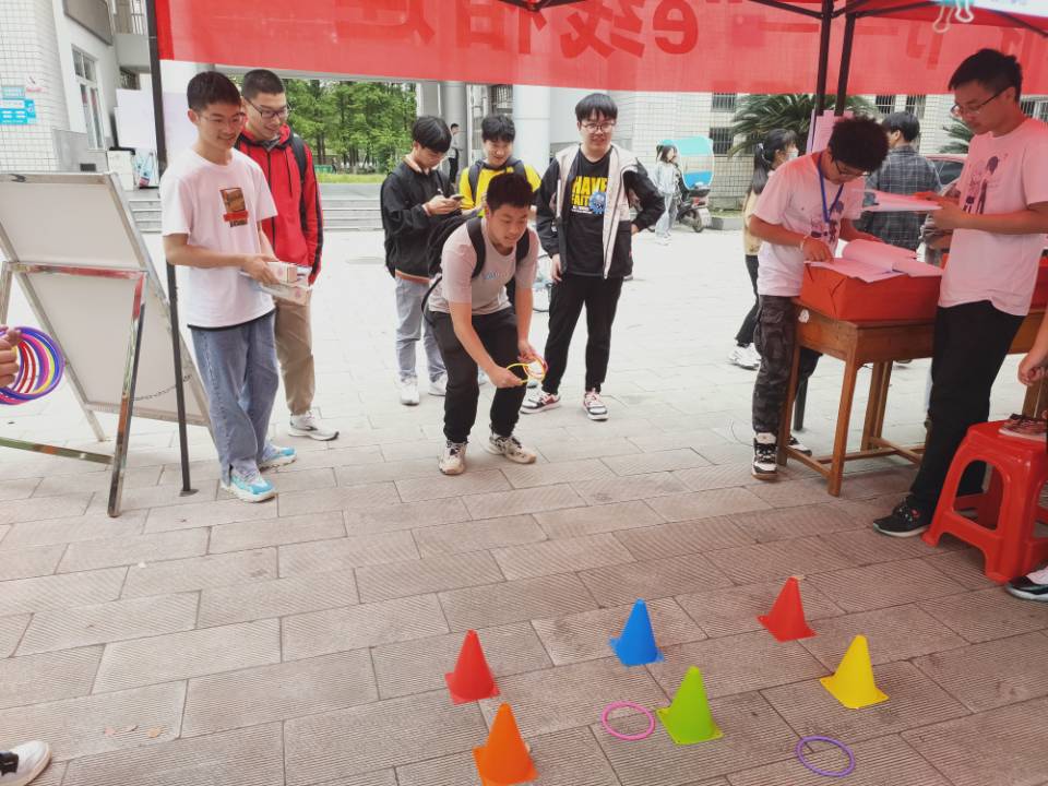 本次活动现场共分成四个区,分别是知识竞答区、游戏区、领奖区和活动宣传区。知识竞答区同学们可进行现场抽题,题目内容涵盖计算机基础知识和党章党史,题型分为单选题、多选题和填空题,难度不一样的题目则礼品设置不一样。同学们在答题的过程中,既收获了知识又获得了快乐。如果你觉得智力游戏不适合你,那么还有趣味横生的套圈小游戏等着大家。通过以上任意一种活动就可以在领奖区领取书签、水杯、多肉植物和小电扇。多样的题型让同学们开动脑筋,精彩的游戏赢得了同学们阵阵欢呼。