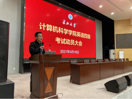 接下来,詹炜副院长讲述了自己学生时代学英语的艰难环境,“现在优越的环境为同学们营造了良好的学习条件,应珍惜当下,努力学习”。詹院长从学生个人发展角度,强调了英语四六级成绩在未来就业竞争中的重要地位,希望同学们做好规划,都能学有所成。