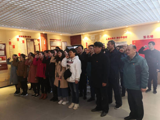 参观结束时,全体党员同志面对党旗,举起右拳庄严宣誓,再次重温了入党誓词。