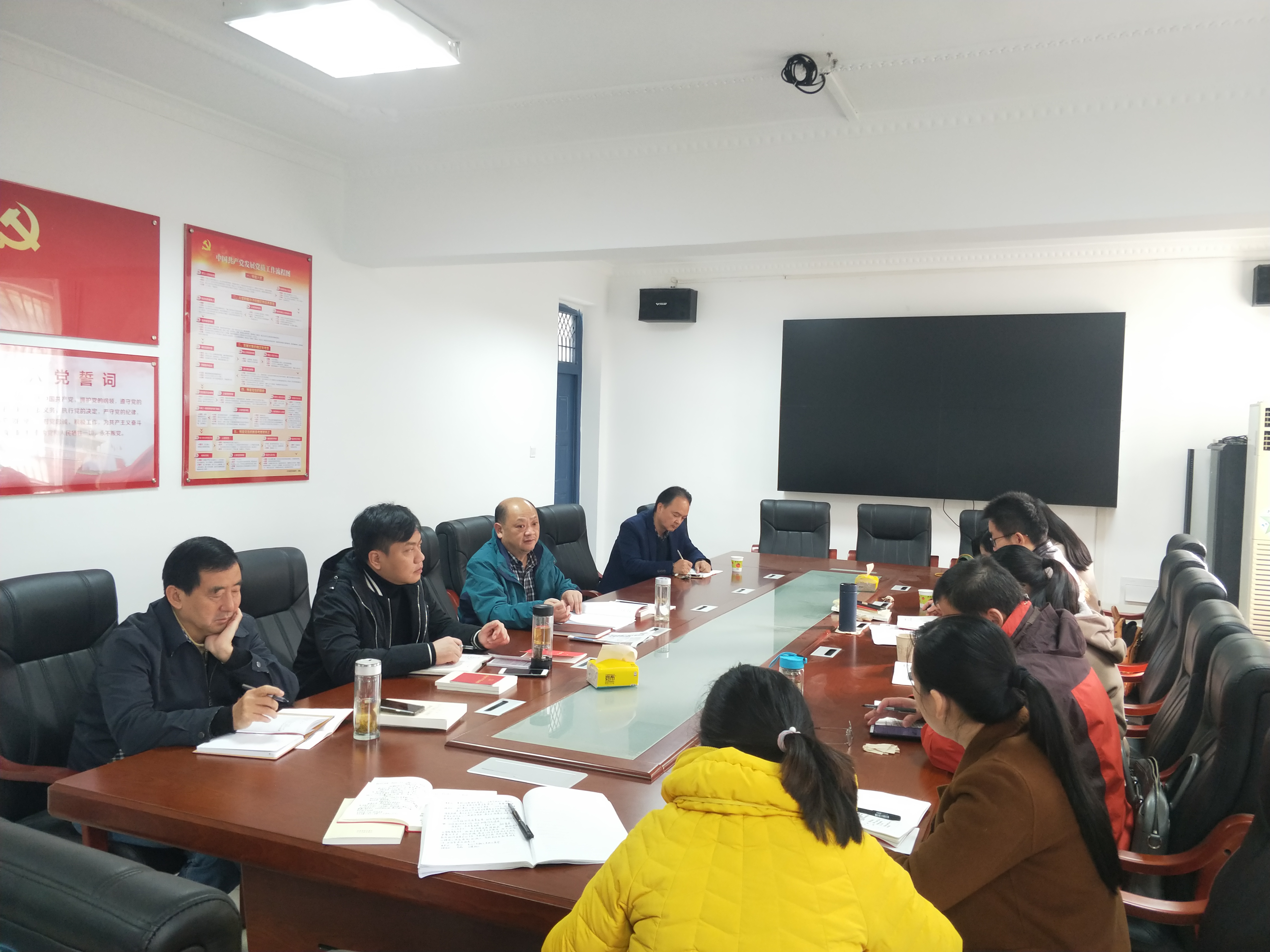 会上,中心组成员对十九届四中全会通过的《中共中央关于坚持和完善中国特色社会主义制度 推进国家治理体系和治理能力现代化若干重大问题的决定》、朱业宏书记《将“改”字贯穿主题教育全过程》和组织部《关于近期抓好主题教育的具体要求》进行了集中深入学习。结合朱书记在《生命长江》上的讲座,高书记将十九届四中全会的精神与荆州地区的发展联系起来,从理论层面对公报精神做了细致的讲解,从历史层面对荆州发展做了回顾,从实践层面指出今后计科学院的发展要融入到社会服务中去。高书记再次强调了主题教育学习的重要性,理论学习要有收获,重点在于与实际工作相结合。