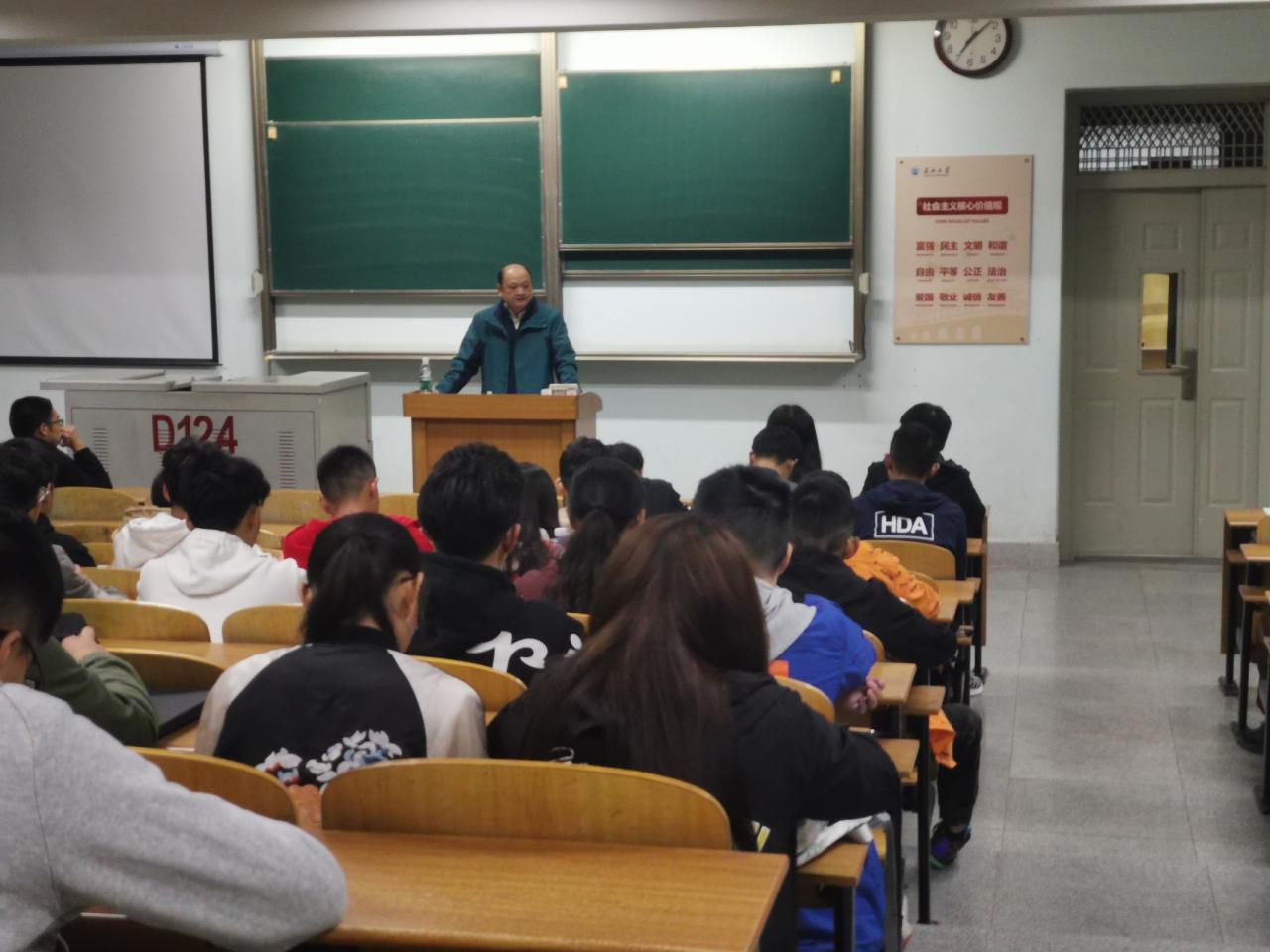 2019年11月7日晚7点,WilliamHill威廉希尔党委书记高明成同志在13教D124进行了以“坚定理想信念 做对党忠诚为党尽责的合格党员”为主题的专题党课讲授活动。我院本科生和研究生中思想积极要求进步申请入党的优秀学生、入党积极分予以及预备党员参加了本次的党课学习。