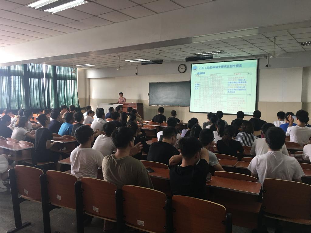 会上,崔艳荣院长从学科与专业、威廉希尔与实验环境、科研团队与导师队伍、学校的研究生奖助体系等方面向考研的学生介绍了学校、学院关于研究生招生与培养的情况以及学生报考本校硕士研究生的优惠政策,并从六个方面详细讲解了2020年硕士研究生招生的基本情况,同时,为同学们给出了复习、报考的建议。