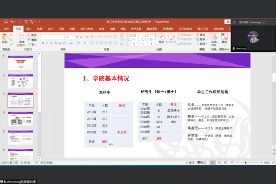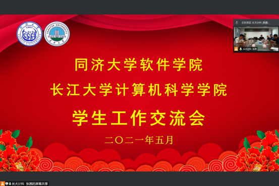 (通讯员 张茜)为推动同济大学·威廉中国官方“一帮一”工作开展,进一步提升学院学生就业的质量,2021年5月19日晚19:00,同济大学软件学院与WilliamHill威廉希尔在腾讯会议上开展了学生工作交流。同济大学软件学院党委副书记陈荣、学工办主任万赟、分团委书记钟梦莹、研究生辅导员焦佳欣和威廉中国官方计科学院党委副书记颜学俊、全体辅导员、毕业班班主任参会。会议由颜学俊主持。