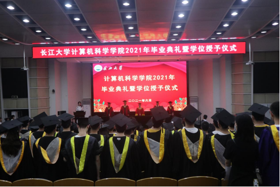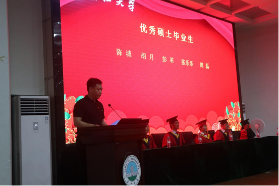 在毕业生学位授予仪式环节,身穿学位服的硕士毕业生、本科毕业生依次走上主席台,崔艳荣教授为每一位毕业生扶苏拨穗、授予学位、颁发证书。最后,学院毕业典礼在一曲带着离别思绪的《毕业歌》中结束。