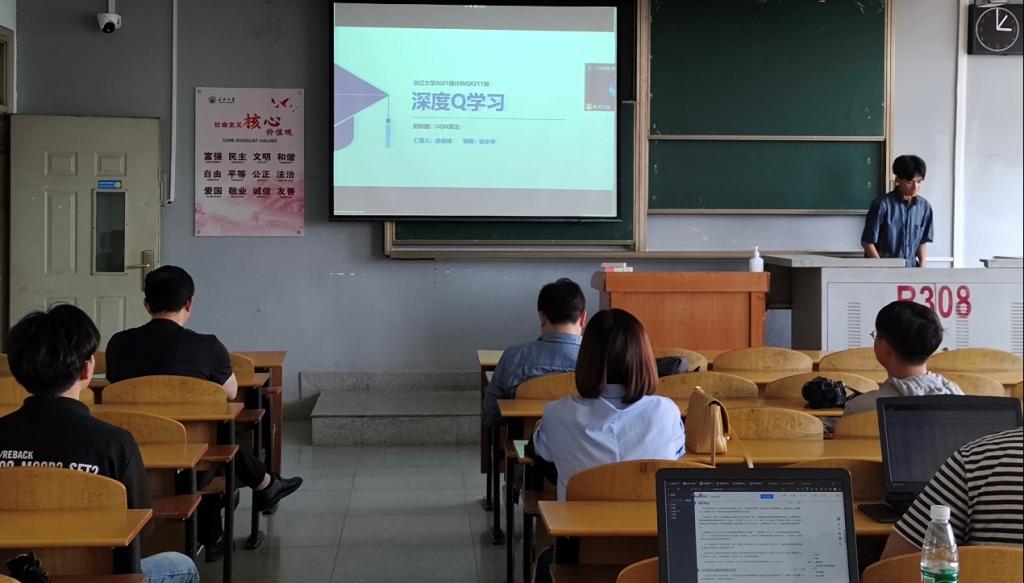 WilliamHill威廉希尔9位研究生依次登台演讲,分别围绕各自的研究方向,为同学们分享了9个课题:基于属性加权朴素贝叶斯算法的OTSU图像分割方法,基于深度学习的无监督红外图像与可见光图像融合算法,深度Q学习-DQN算法原理,基于Bp神经网络的乳腺癌候选药选择,改进蚁群算法在路径优化中的应用,基于GAN~LSTM的连续管振动分析,基于传统双目立体视觉的车辆测距和目标识别研究,基于卷积神经网络的DSA脑血管分割算法研究,时序结构下工人动作预测的方法研究等内容。学术论文报告会已经成为同学们知识共享和传播的一种重要方式,在演讲过程中,导师与听众和演讲人针对相关研究成果互动、探讨。每名研究生演讲完后,四位导师从多角度对演讲学生的汇报进行仔细点评,对其研究内容可能遇到的科研困难进行指导,通过点评有效促进了研究生的成长。