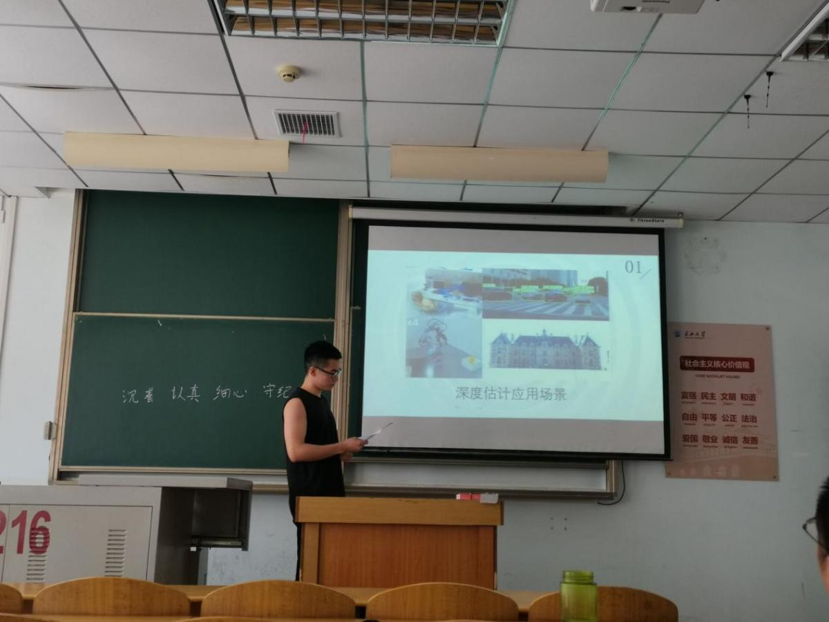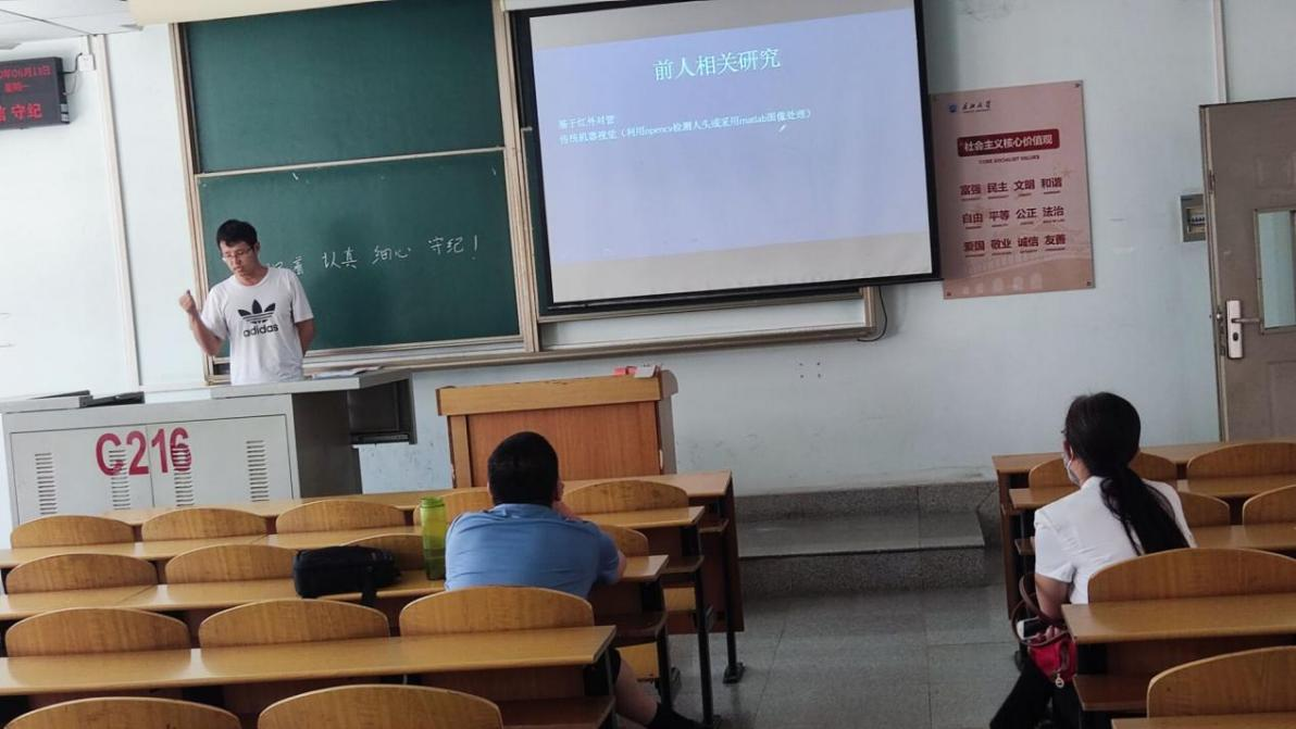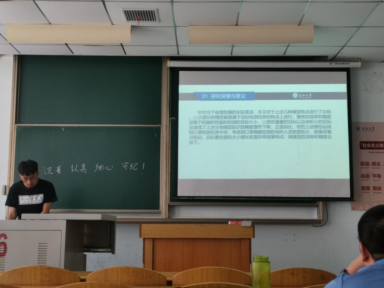 WilliamHill威廉希尔9位研究生依次登台演讲,分别围绕各自的研究方向,为同学们分享了9个课题:葡萄糖霜霉病检测分级、基于深度学习的深度估计算法研究、改进YOLOV5的口罩检测算法、基于改进YOLOV5的安全帽佩戴检测算法、牛奶智能装载算法项目设计实现、基于深度学习的教室智慧节能控制系统设计、基于时间序列的水位预测、测井曲线分层方法研究、基于顺序置乱和三角扩散的彩色图像加密算法等内容。学术论文报告会已经成为同学们知识共享和传播的一种重要方式,在演讲过程中,导师与听众和演讲人针对相关研究成果互动、探讨。每名研究生演讲完后,两位导师从全方位对演讲学生的汇报进行仔细点评,对其研究内容可能遇到的科研困难进行指导,通过点评有效促进了研究生的成长。