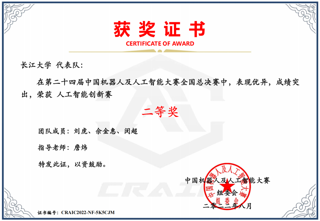 (通讯员 熊梦圆)近日,第二十四届“中国机器人及人工智能大赛”全国总决赛在线上举行。本次大赛,我院研究生团队的“智慧航运——无人机智能船舶水尺读数系统”和“智慧巡检——基于移动端的无人机对地小目标检测与应用”两项作品分别获得全国一、二等奖,展示了长大计科学子在“人工智能+”应用领域的创新实力。