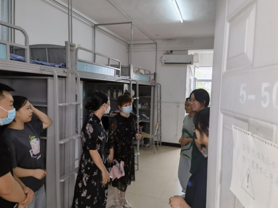 下午15:30,学院院长崔艳荣、党委书记黄群俊、副院长向宇、副院长詹炜、党委副书记颜学俊与辅导员郭帅一起走访了学生寝室,与学生亲切交流。