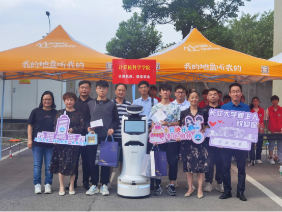 学院迎新现场布置独具特色,迎新过程中亮点纷呈:智能语音机器人首次参与迎新工作,吸引了大量学生围观。迎新志愿者余浩琦与机器人互动后感叹道:“学好专业知识还是很重要的,以后可以编程属于自己的机器人。