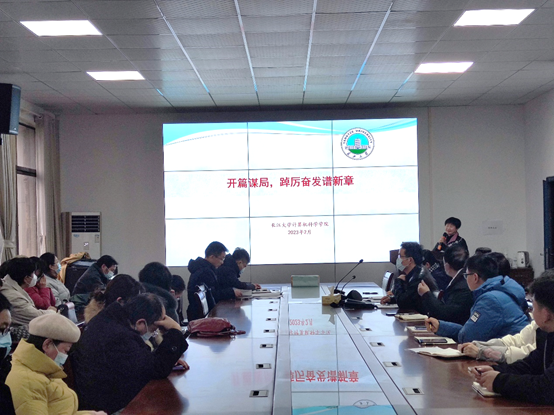 (通讯员 熊晶)2023年是全面贯彻落实党的二十大精神的开局之年,是学校全面推动高水平大学建设的关键之年,更是学院接续奋斗的爬坡之年。2月12日下午2:30,学院在5教501会议室召开新学年第一次全院会议,进行2023年学院各项工作的通报与部署,会议由党委书记黄群俊主持。