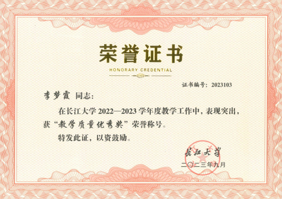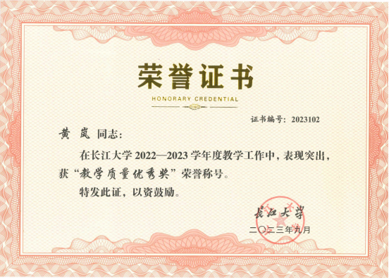 王桃群、何黎霞、黄岚、李梦霞、王剑、叶青等6位老师荣获2022-2023年“教学质量优秀奖”荣誉称号