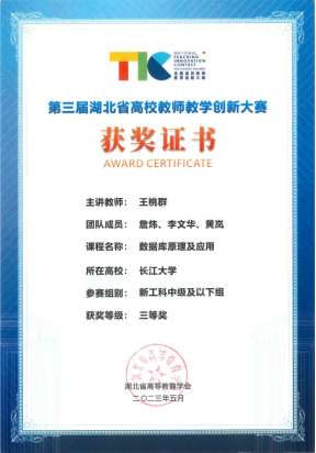 王桃群老师及其团队荣获高校教师教学创新大赛(中级及以下组)三等奖