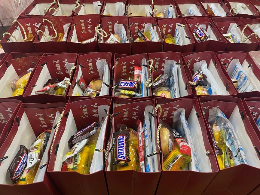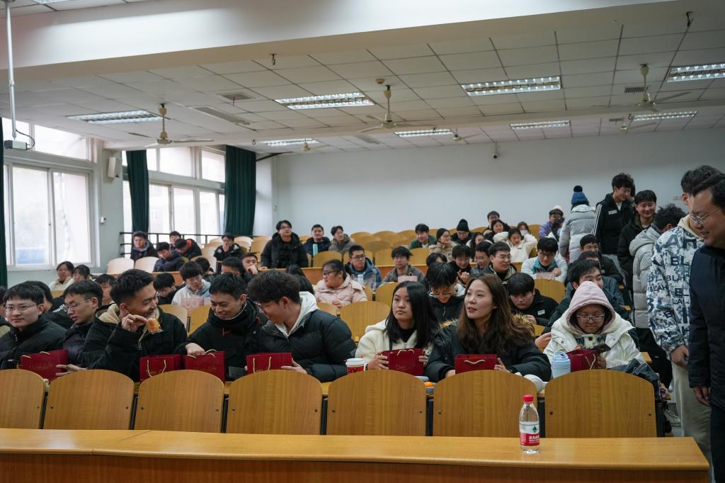 最后,班主任们依次为考研学子送上学院精心准备的考研礼包,里面有研究生学长学姐亲笔手写的“研气满满”的祝福卡片、面包、牛奶、咖啡、士力架、巧克力和口罩,使同学们切身感受到学院的大力支持和深深关爱。