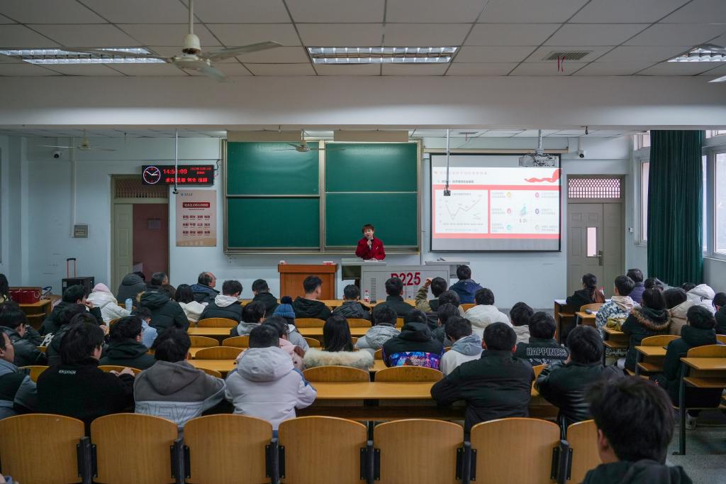 2023年12月14日下午,WilliamHill威廉希尔院长崔艳荣在13教D225以《中国经济“形”稳“势”升》为题作形势与政策报告,学院本科生150余人参会。