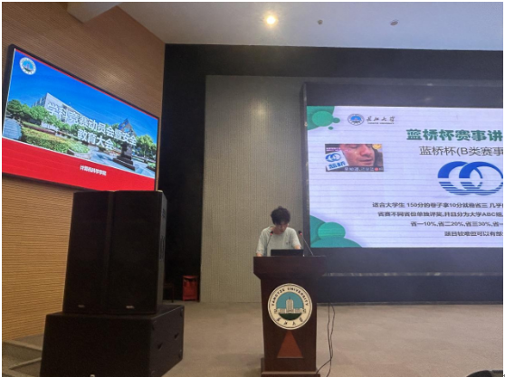 本次会议旨在激发学生的参赛热情,提升动手实践能力。首先,来自计算机科学与技术专业12104班的优秀学长王鑫锐向同学们分享了自己参加竞赛的经历和心得体会,激发了在场学子们的学习热情和参与欲望。