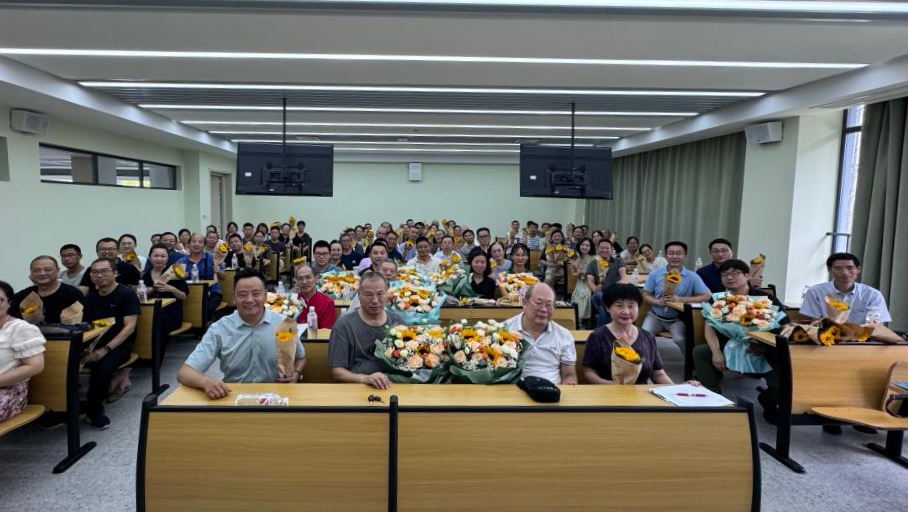 第二议程是表彰学院2024年上半年工作突出的教师代表。获奖者包括:获批“国家自然科学基金青年科学基金项目”的牛娇娇博士;指导学生在第十八届“挑战杯”全国大学生课外学术科技作品竞赛中荣获三等奖的李文华老师及其团队;获得2024年湖北省科学技术进步奖二等奖的雷鸣老师;带领2023级本科生英语四级一次性通过率87.90%(创历史新高)的一年级辅导员郭帅;以及担任2020–2023级新生班主任,所带班级英语四级通过率连续4年居学院第一的辅导员余珺瑞。在第40个教师节即将到来之际,各系部主任为老师们一一献上了鲜艳的向日葵,祝愿全体教职工节日快乐,表达对他们辛勤工作的感谢。