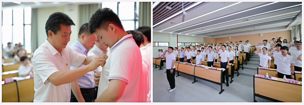 活动中,党员老师为毕业生党员佩戴徽章,象征使命传承。与会全体党员重温入党誓词,誓言铿锵,展现科技报国决心。