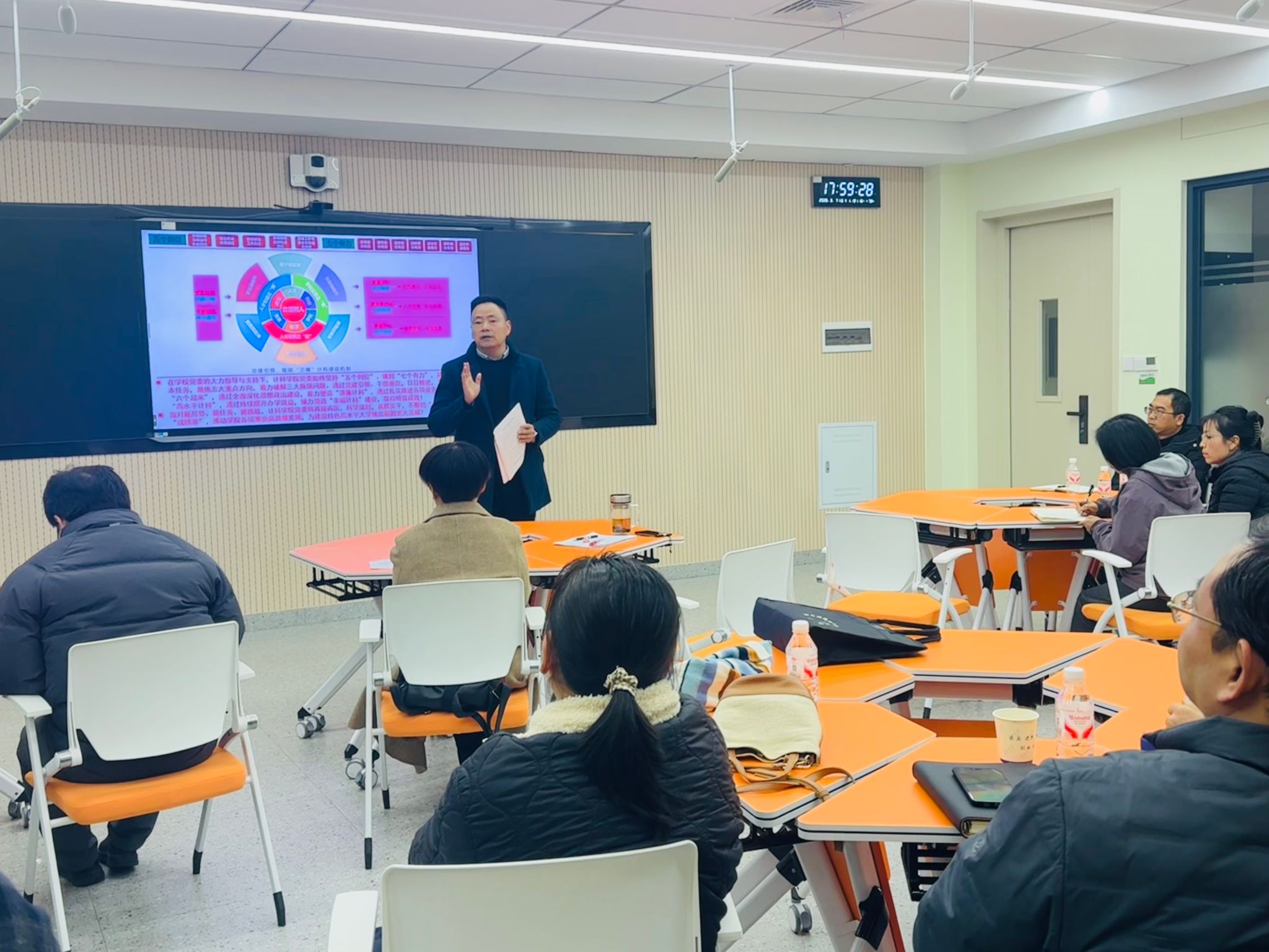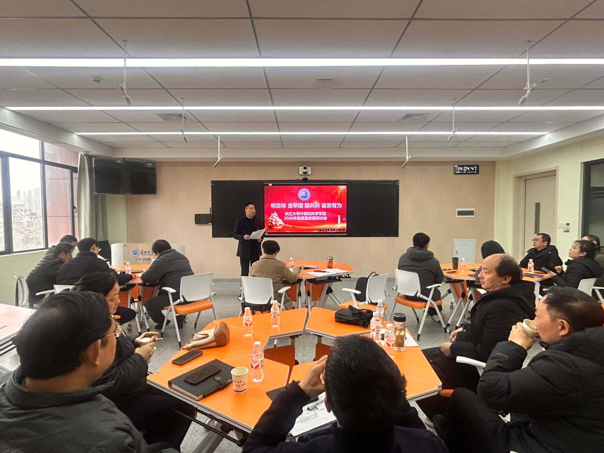 各系部及职能科室负责人立足岗位职责,围绕发展重点依次发言。计算机科学系聚焦专业认证、AI赋能教学、学科竞赛与科研创新;网络工程专业紧盯工程教育认证关键环节;软件工程系细化年度任务,强化责任落实;智能科学与技术系围绕学科建设与人才培养明确攻坚方向;基础教学部聚焦课程改革,推动人工智能与教学深度融合;实验中心强化安全管理与条件保障;学生工作办公室细化育人指标,强化过程管理;学院办公室坚持精细管理,提升服务保障能力。