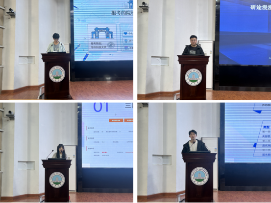 大会伊始,四位优秀学生代表分享发展经验:考研高分考取华中科技大学的刘瑞红、本校研究生连涛、考入四川税务局的陈慧琳、湖北省选调生蔡斯耀,分别从考研、考公、选调生方向,分享了备考方法、流程要点与心态技巧,为同学们提供实用指引。