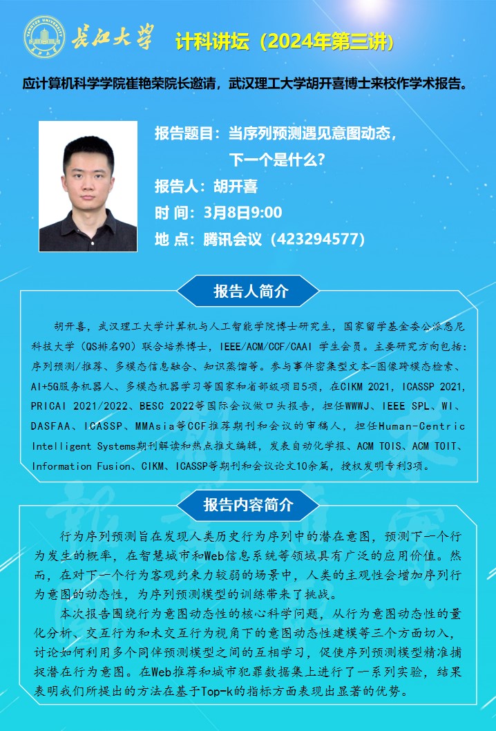 计科讲坛(2024年第三讲):当序列预测遇见意图动态,下一个是什么?