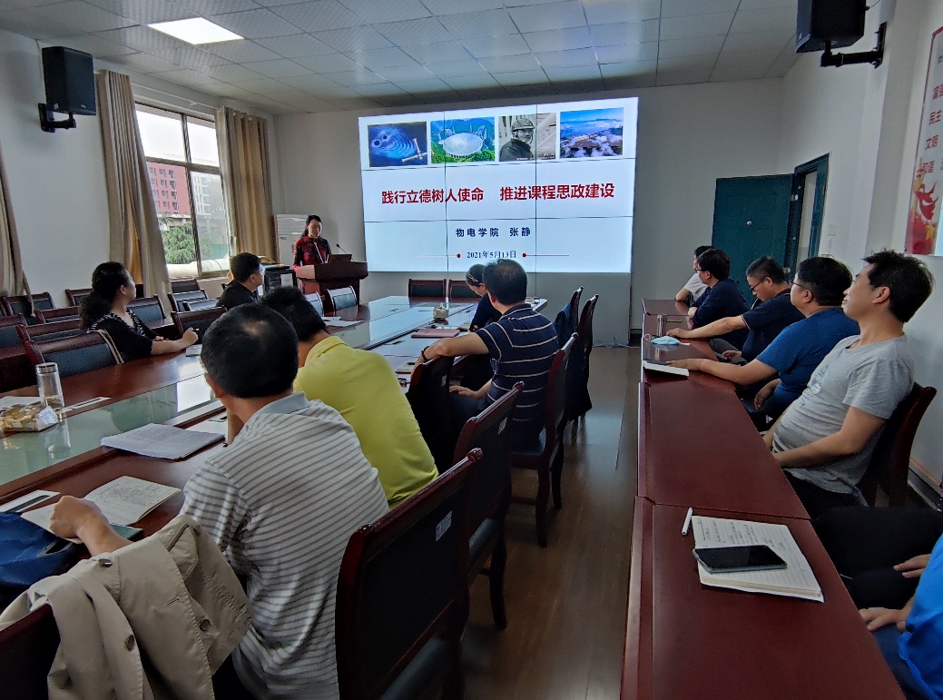 本次活动邀请了物电学院张静教授作《践行立德树人使命 推进课程思政建设》专题辅导,从为何开展课程思政、如何开展课程思政、怎样做好课程思政三个方面进行了详细讲解。张教授从国家政策文件入手,梳理出课程思政的核心概念、地位作用、主要内容、开展方式等,展示了全国各地课程思政最新进展;结合自身的思考与实践,指出开展课程思政的关键点:团队是基础,体系是关键,元素是抓手;通过大量实例,详细讲解课程内容融合“思政元素”的两种方式:一是拓展内涵,在传统课程教学基础上围绕“思政元素设计课程”,二是融合创新,在专业课程教学中融入“体现价值塑造的思政元素”。同时指导老师们开展多样化合作学习、共筹学习内容、过程化测评数据分析、多样化激励措施等,润物细无声地加强课程思政。