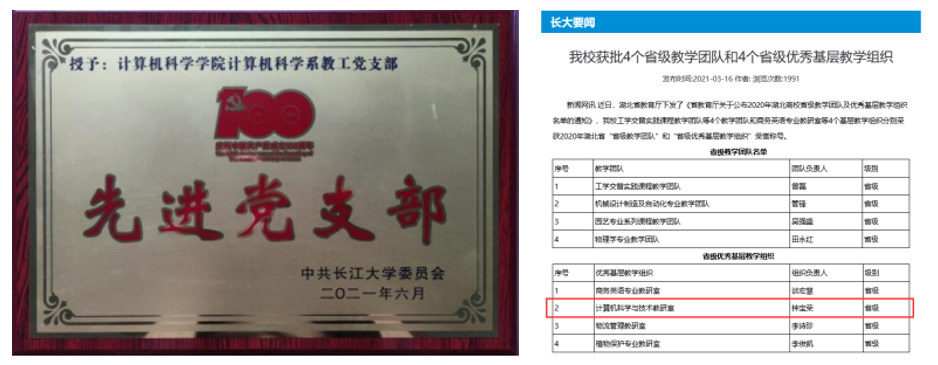 近期,我院计算机科学与技术系教工党支部荣获荆州市“红旗党支部”称号,并成功获批为威廉中国官方党建工作样板支部。同时,研究生第一党支部也荣获校级“研究生样板党支部”创建单位。