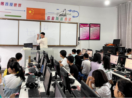 本次“筑梦”实践队的队员有一部分之前没有上课的经历,在支教之前内心既期望又十分忐忑。当来到小学后,学生们好学的热情让支教队员备受鼓舞。虽然是暑期时间,但孩子们积极报名参加编程课程,甚至很多学生比规定上课时间早到1个小时,中午也不回家休息,只为了能学习更多编程知识。“看到学生纯真的求知眼神,我就知道这一次的支教之旅值得。也许我不能教会他们很多技能,但如果可以在他们心中埋下一粒种子,让孩子们知道未来可以有无限可能,那就足够了。”支教队员付金恒感慨到。
